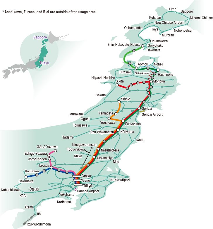 Zoals de naam al verraadt, is deze pas geldig op het noordelijke deel van het eiland Honshu. De belangrijkste verbindingen zijn de treinsporen tussen Tokyo, Nikko, Fukushima, Yamagata, Akita, en helemaal naar Sapporo (op het eiland Hokkaido). Hierbij pak je dus het hele gebied tussen Tokio en Sapporo.